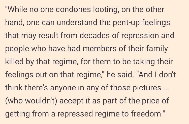 : In 2003, Rumsfeld noted that looting is a part of the transition to freedom