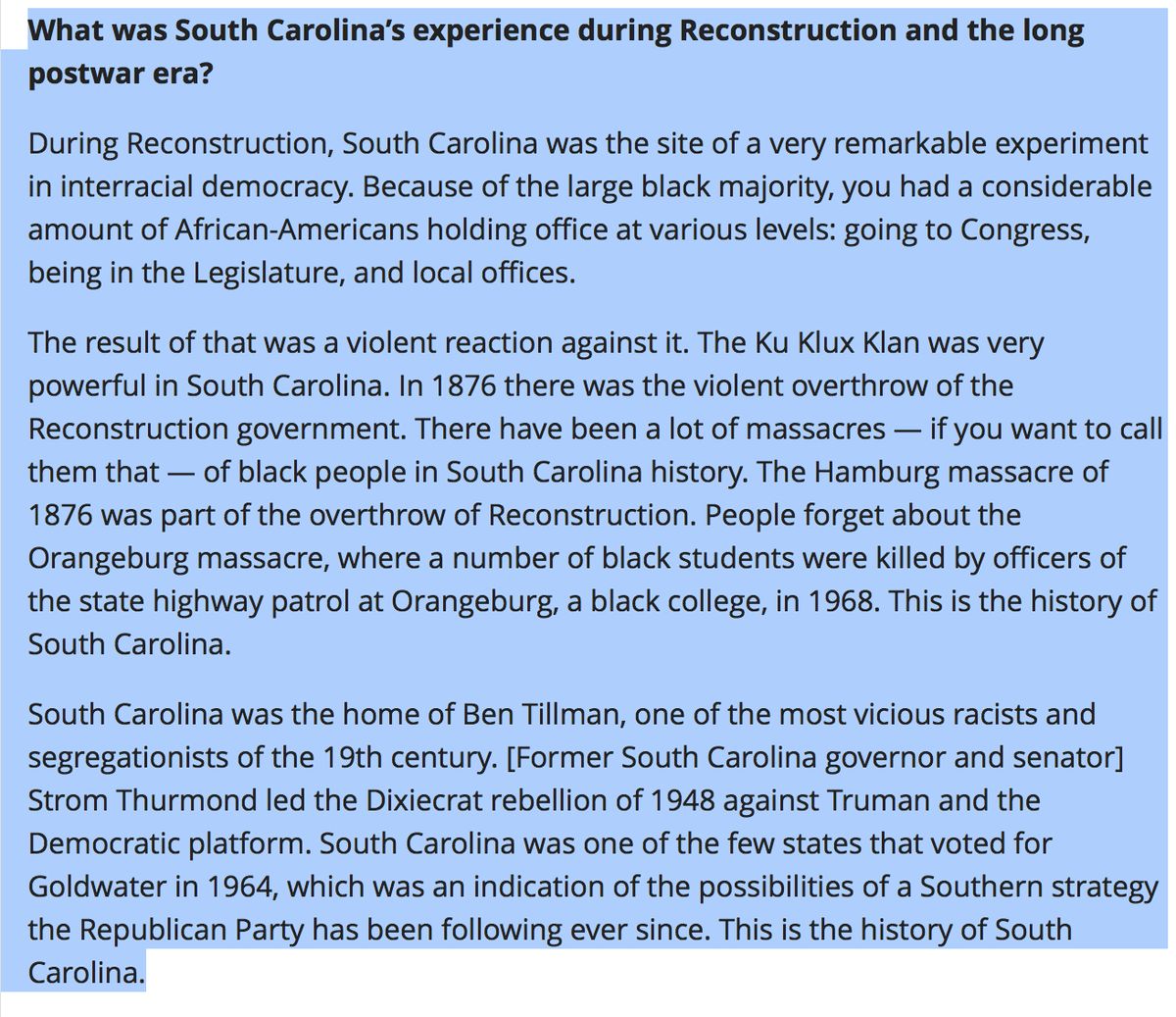 : Terrific Eric Foner on South Carolina and the use and abuse of history.