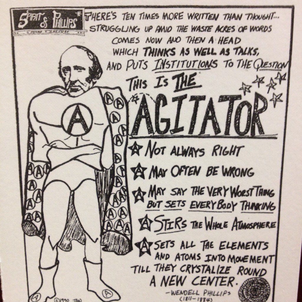 3. One of my fave Moore cartoons of Wendell Phillips, "The Agitator," hangs on my door. #4thPrecinctShutDown
