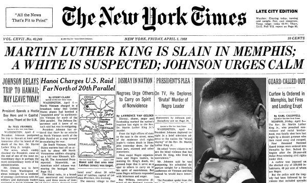 : Rev. Dr. Martin Luther King Jr. is slain in Memphis on this day in 1968.